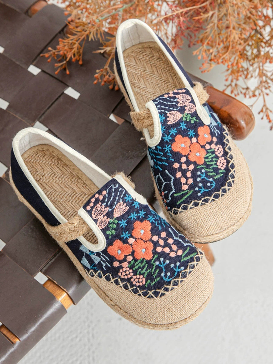 Scarpe estive da donna in tela e lino con ricamo floreale etnico